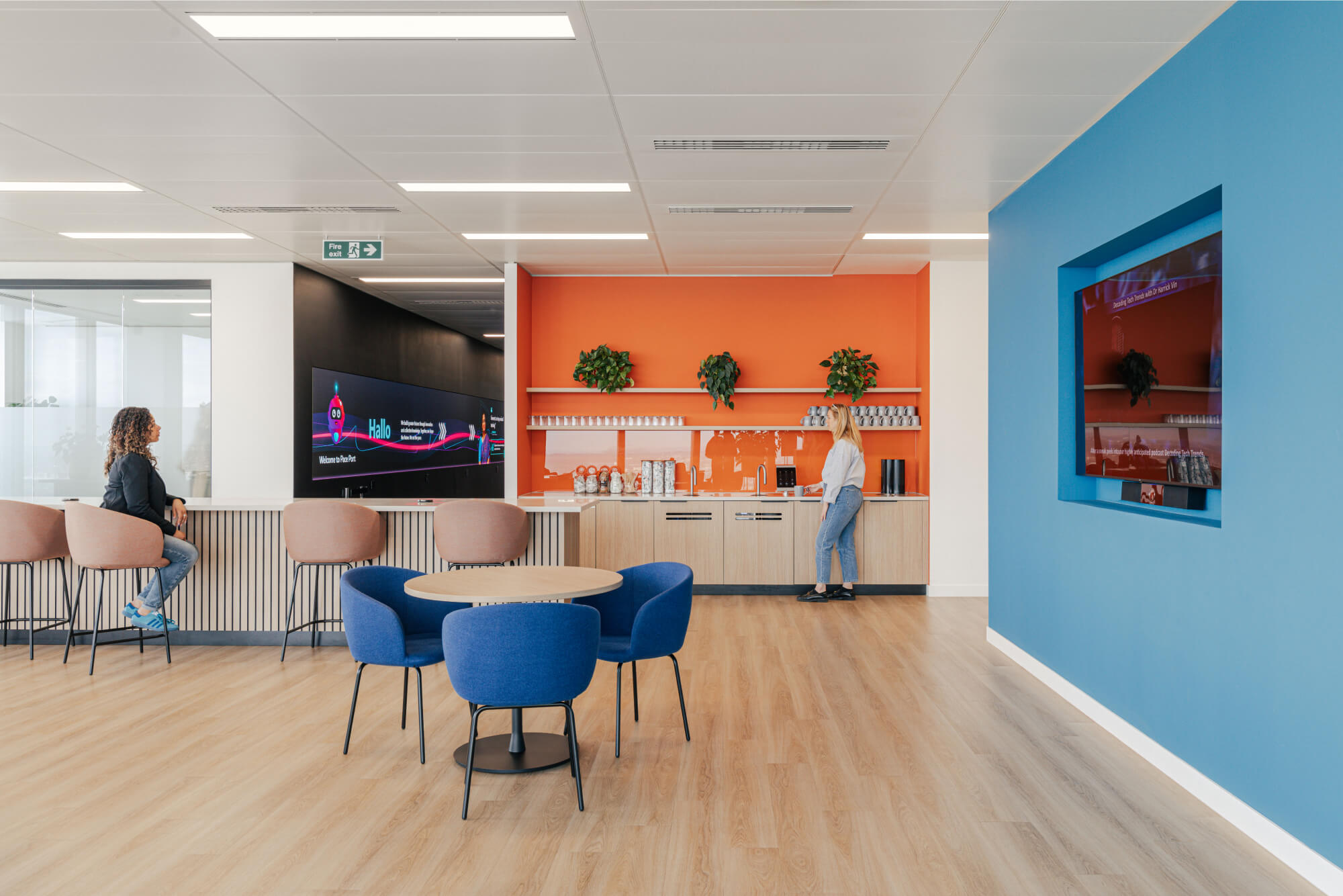 Balancing hosting spaces, collaboration areas, and functional workspaces was crucial in the design process. With a focus on fostering collaboration and accommodating the subsidiary, Pace Port’s tech-led needs, the project required a collaborative and committee-based approach.The design seamlessly guides visitors through reception to meeting rooms, a client lounge, and the dynamic Sky Lounge, allowing for flexibility while maintaining a cohesive aesthetic. The different spaces accommodate the different ways in which staff may choose to work. However, the space can also be cleared for events for up to 100 people as required, complete with key features such as a video wall for presentations.